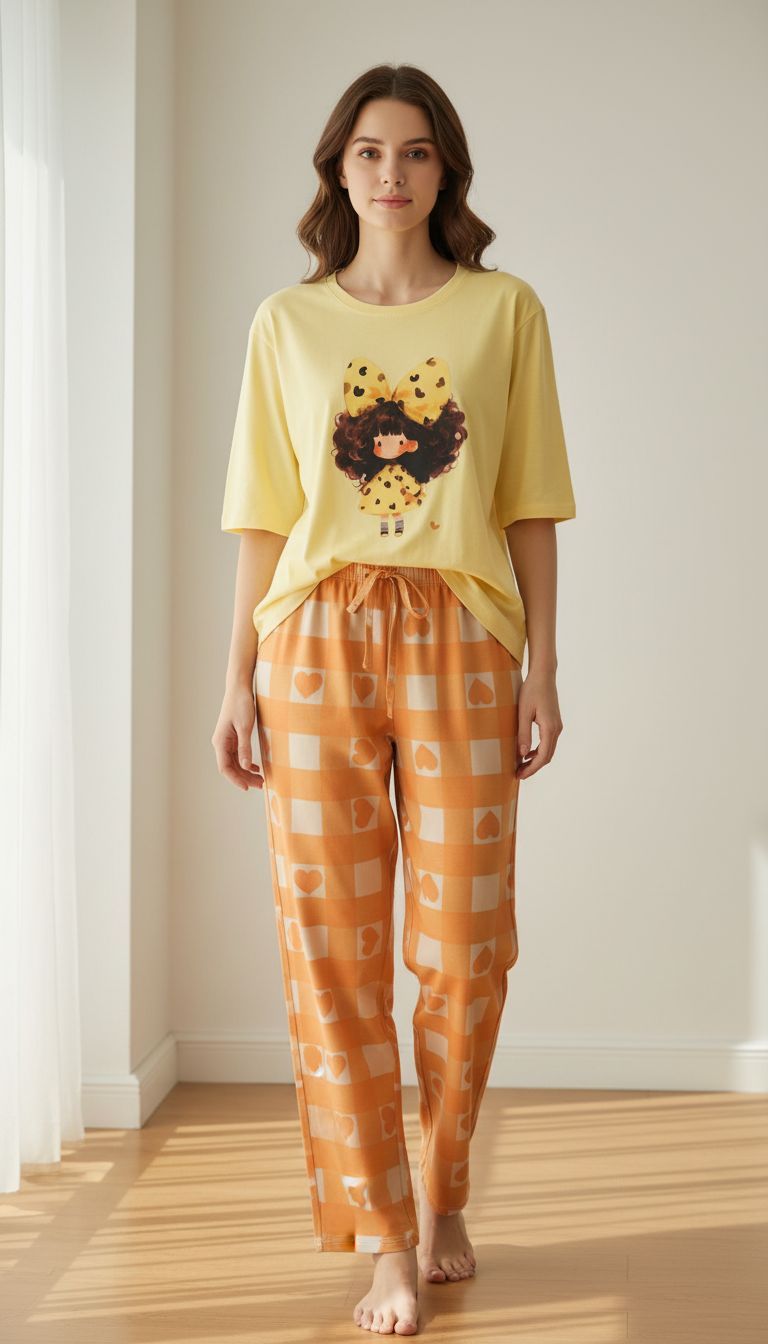 ناموجودست تیشرت شلوار عروسکی طرح دختر فرفری🧡