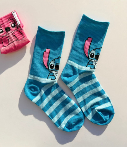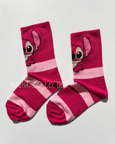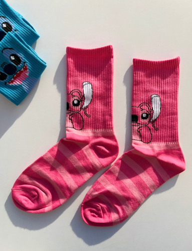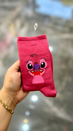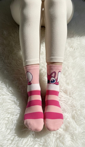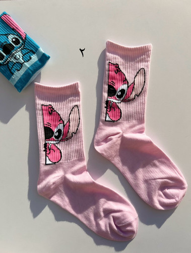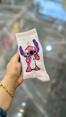 جوراب ساقدار پنبه طرح استیچ صورتی