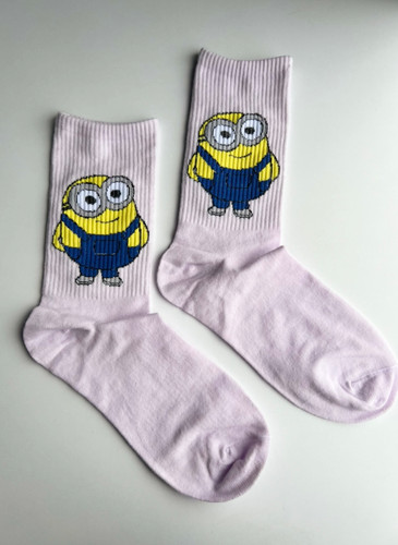 جوراب ساق بلند طرح مینیون رنگ یاسی