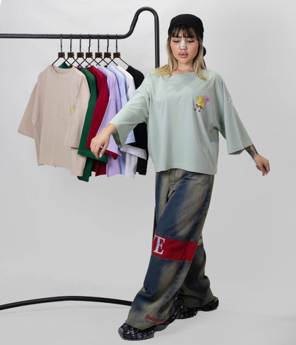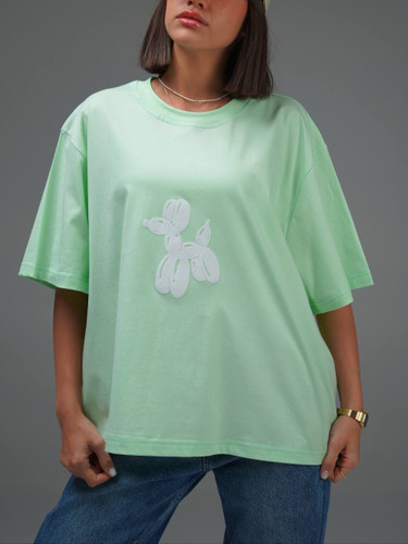 ناموجود تیشرت باکسی طرح سگ بادکنکی رنگ سبز پاستیلی 💚