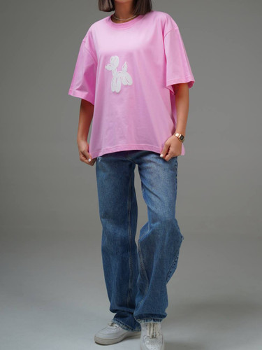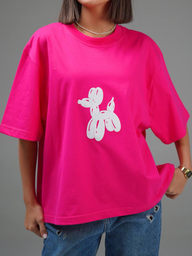 ناموجود تیشرت باکسی طرح سگ بادکنکی رنگ صورتی یواش 💗