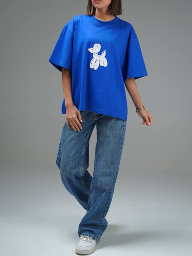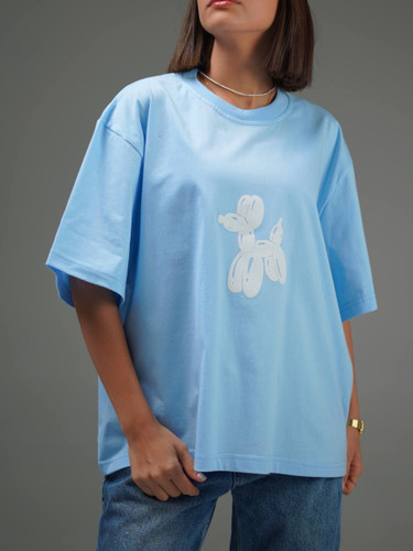 ناموجود تیشرت باکسی طرح سگ بادکنکی رنگ آبی یواش 🩵