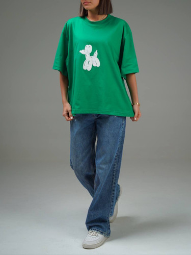 ناموجود تیشرت باکسی طرح سگ بادکنکی رنگ سبز 💚