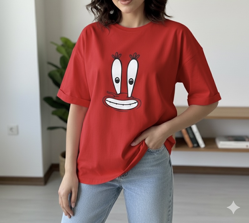 تیشرت لانگ باکسی فانتزی انیمه طرح پاتریک 🩷