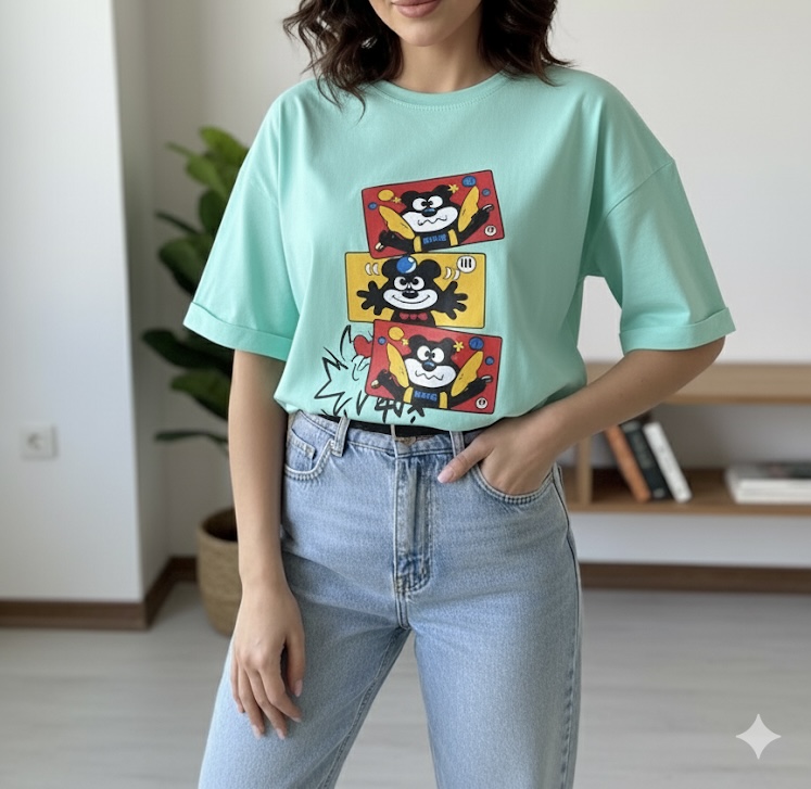 ناموجود تیشرت باکسی طرح سگ بادکنکی رنگ سبز پاستیلی 💚
