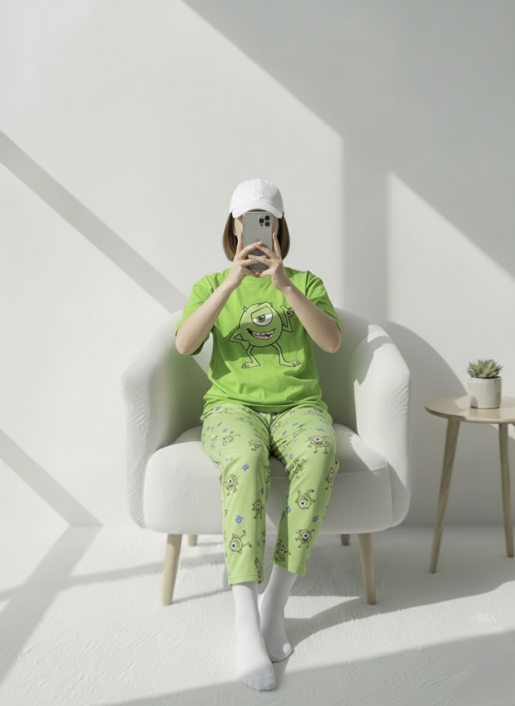 تیشرت لانگ فانتزی انیمه طرح مایک کارخانه هیولاها 💚