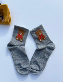 جوراب نیم ساق بچگانه طرح خرسی (تدی) طوسی
