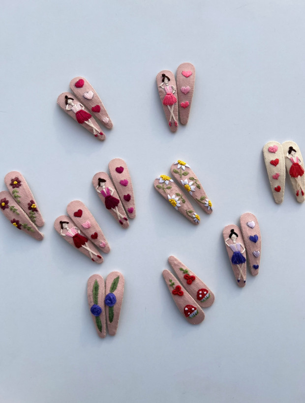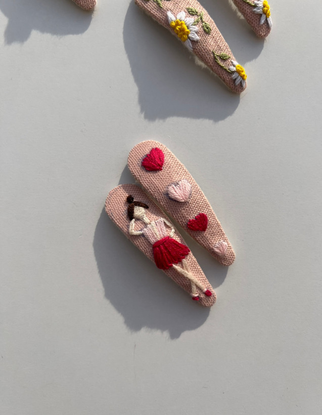 گیره تق تقی دست ساز گلدوزی شده طرح دخترک