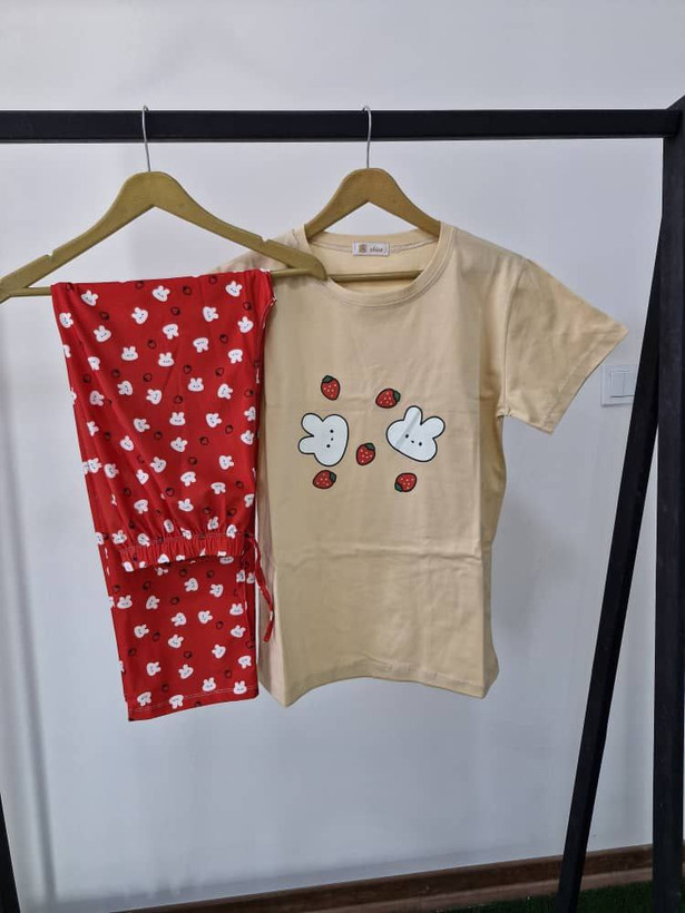 تیشرت شلوار طرح خرگوش و توتفرنگی