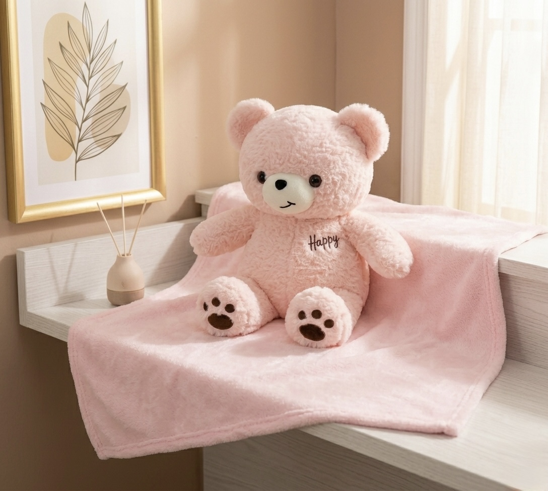 عروسک بالشتی پتودار تدی صورتی 🩷